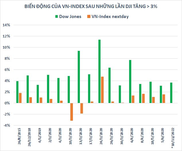 Nếu đêm qua Dow Jones tăng 500 điểm: Nhà đầu tư Việt Nam thường hưng phấn, mở Gap tăng vào sáng hôm sau.