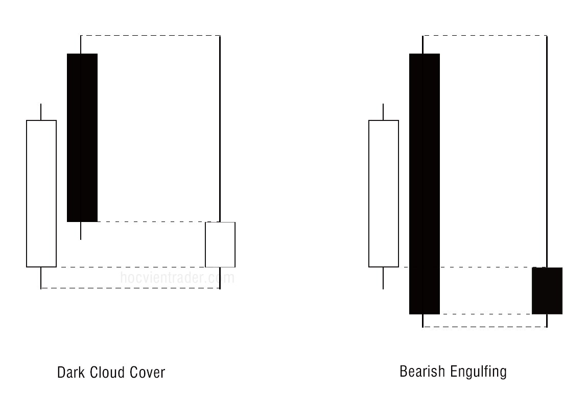 So sánh nến Bearish Engulfing và nến Dark Cloud Cover (Mây đen che phủ)