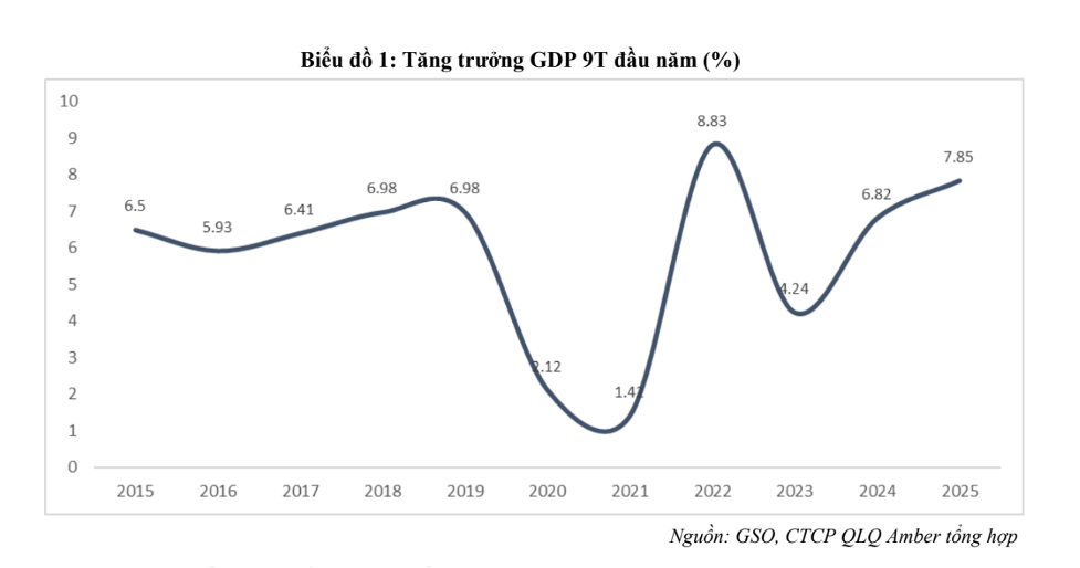 - Tăng trưởng GDP ấn tượng: 9 tháng đầu năm 2025, GDP ước tăng 7.85% so với cùng kỳ. Động lực đến từ sự phục hồi của xuất khẩu (tăng 16%) và sự bứt phá của ngành công nghiệp chế biến, chế tạo.