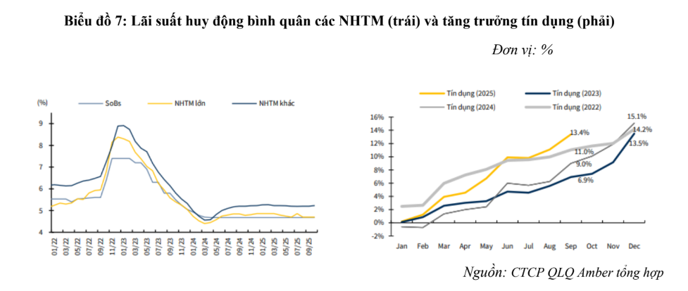 - Chính sách tiền tệ nới lỏng & Lãi suất thấp: Ngân hàng Nhà nước (NHNN) tiếp tục duy trì mặt bằng lãi suất thấp để kích thích tín dụng (tăng trưởng tín dụng 9 tháng đạt 13.4%). Khi lãi suất tiết kiệm không còn hấp dẫn, dòng tiền thông minh tất yếu sẽ chảy mạnh vào kênh chứng khoán để tìm kiếm tỷ suất sinh lời (E/P) cao hơn.